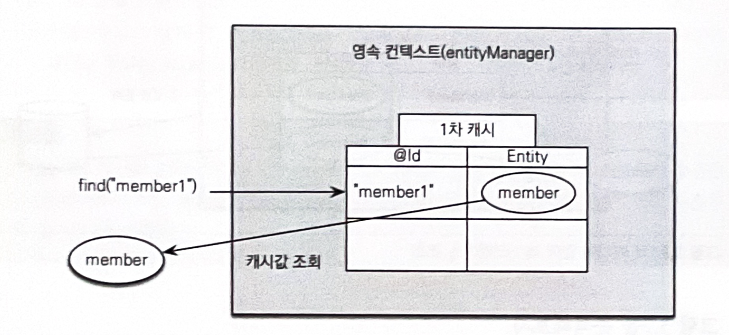 Member member = em.find(Member.class, "member"); // 1차 캐시에서 조회